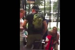 Szonert (kanan) yang ditemani dua lelaki ke sebuah pusat membeli-belah untuk menemui Crick sebelum melarikan anak lelakinya. - Gambar YouTube
